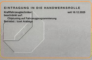 Unsere Eintragung ist auf Fahrzeugprogrammierung und Chiptuning beschränkt.